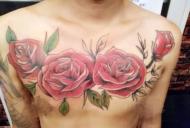 • 女性大花胸纹身_43张霸气漂亮的女性大花胸纹身图案作品