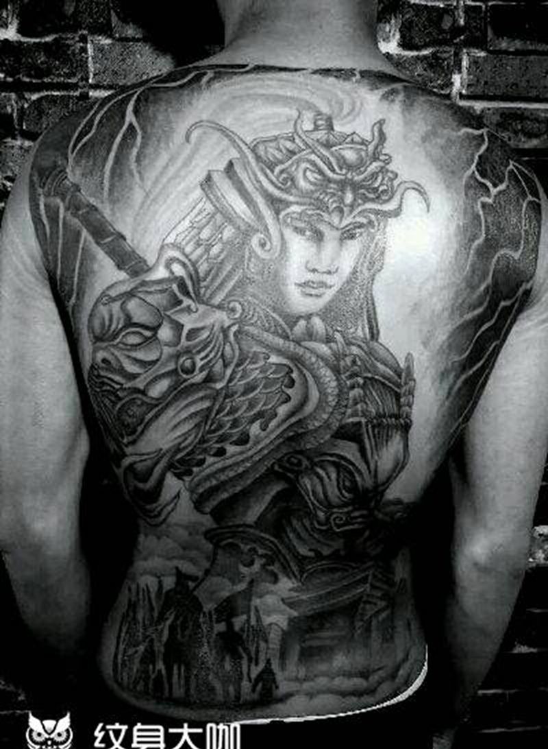 黑灰满背纹身图案