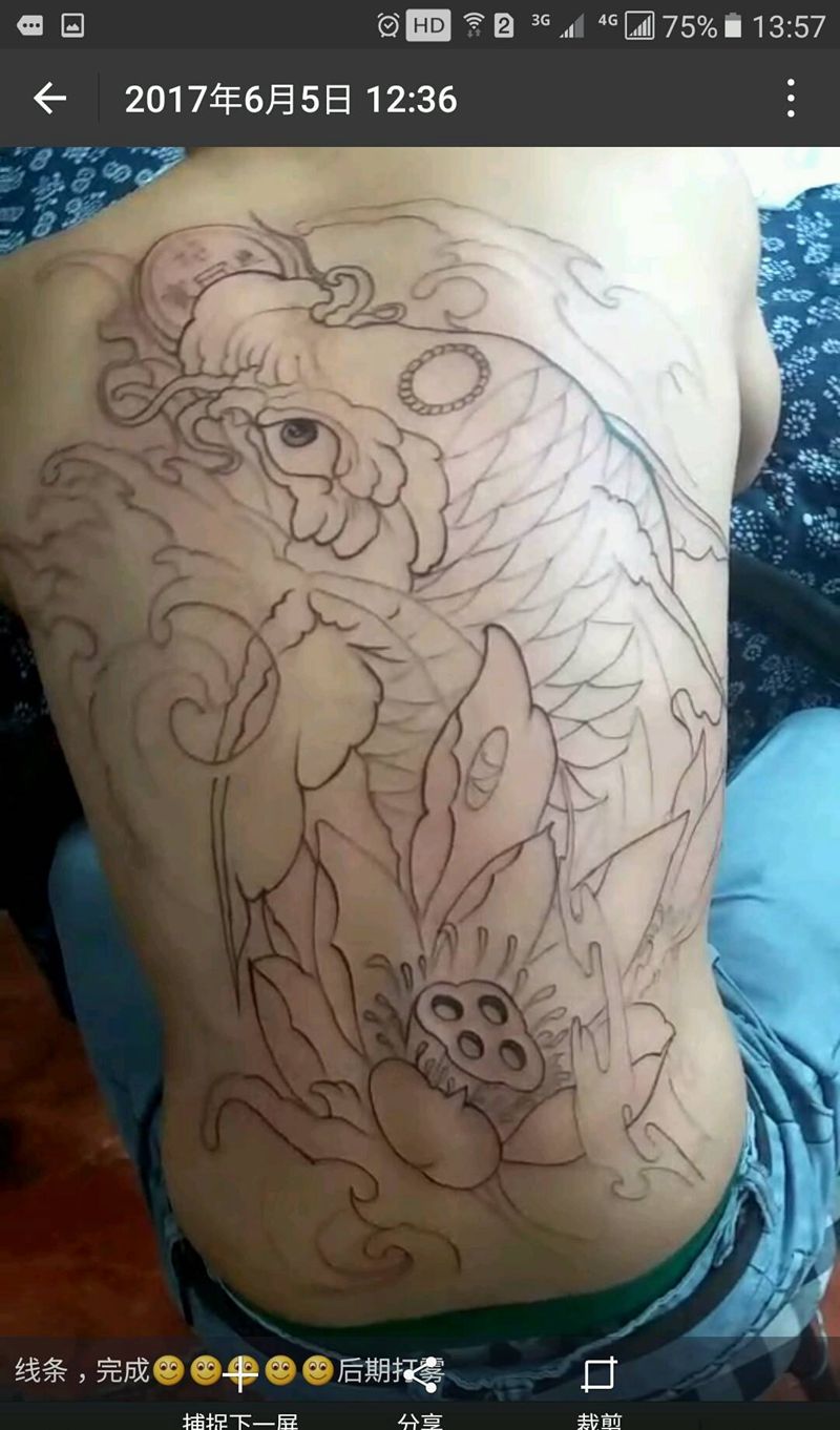 当前位置: 首页 >河南省安阳市纹身店-安阳圣青纹身工作室纹身图案>后背鱼,线条完成纹身图片