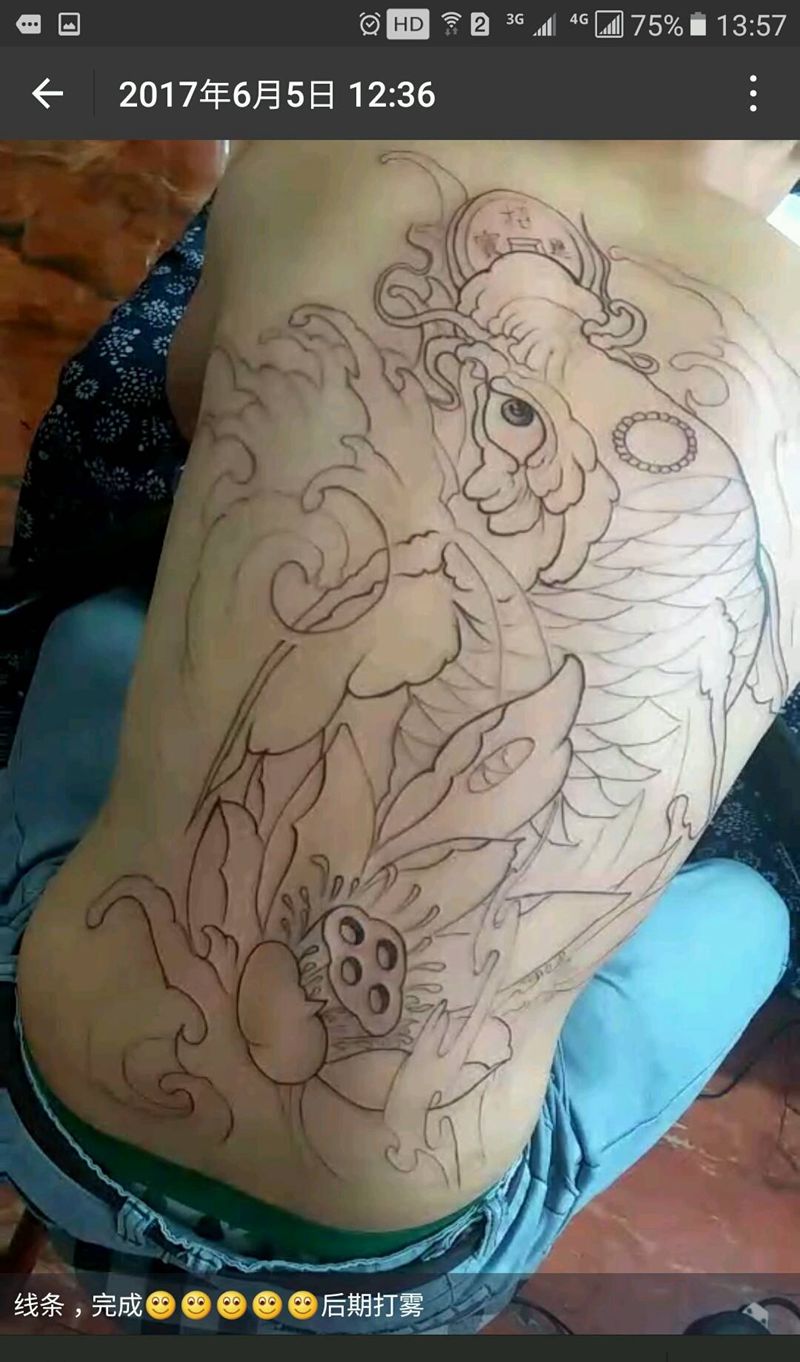 当前位置: 首页 >河南省安阳市纹身店-安阳圣青纹身工作室纹身图案>后背鱼,线条完成纹身图片
