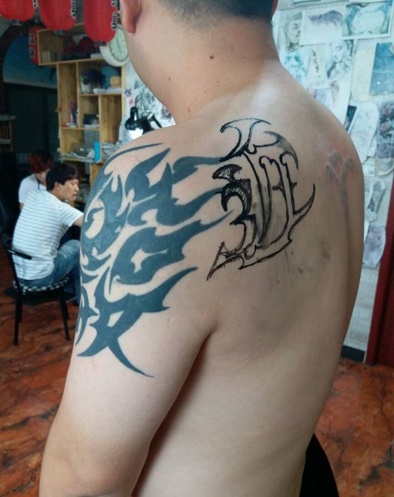 • 纹身吧推荐的披肩图腾半胛纹身图案作品展示