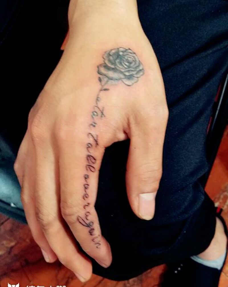 • 手背潮流时尚的玫瑰花眼睛纹身图案