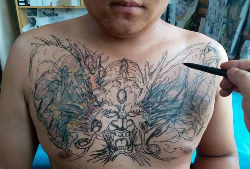 • 男性大花胸_42张优秀的男性大花胸纹身图案图片