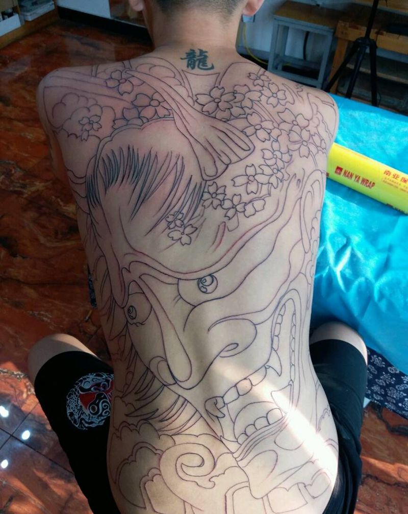 黑灰满背纹身图案