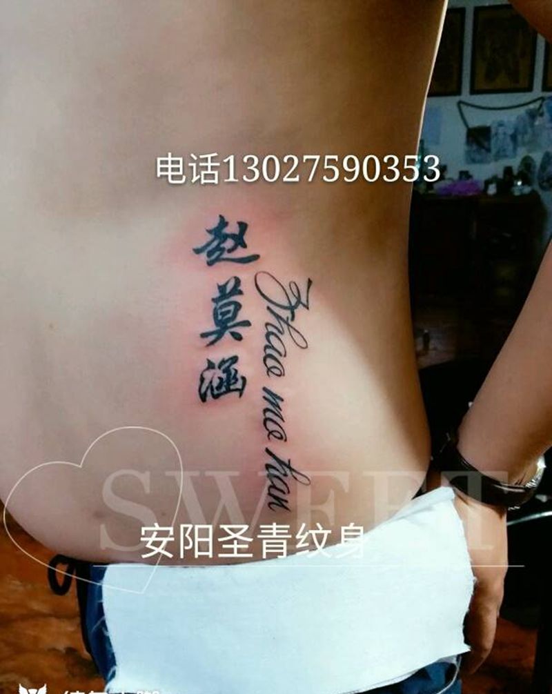 • T关于私处得爱!纹身图片_成品腹部清新字符图腾纹身图案