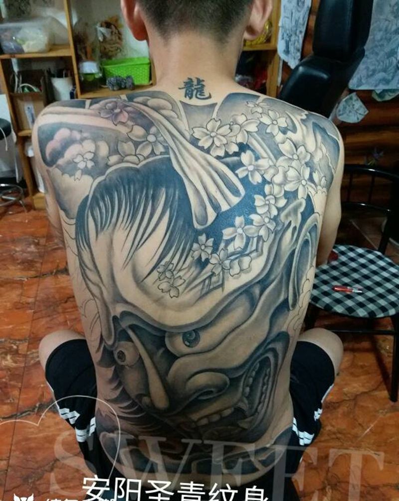 黑灰满背纹身图案