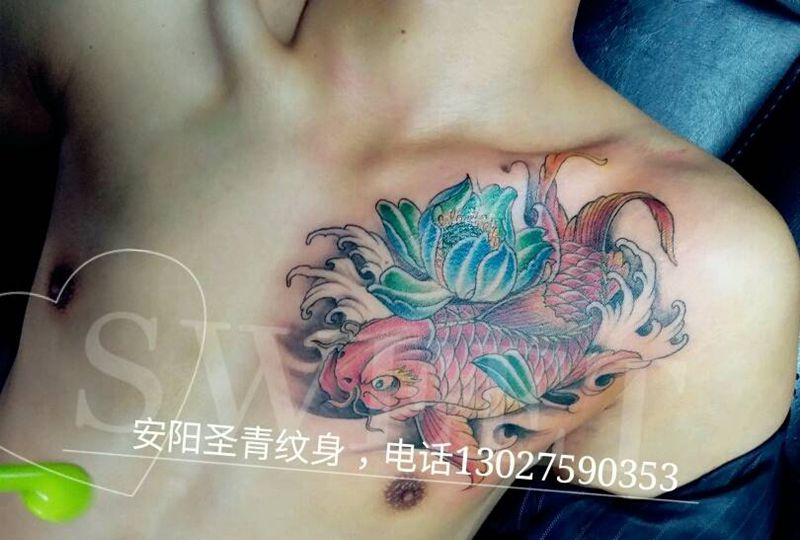 当前位置: 首页 >河南省安阳市纹身店-安阳圣青纹身工作室纹身图案>彩色鱼完成纹身图片