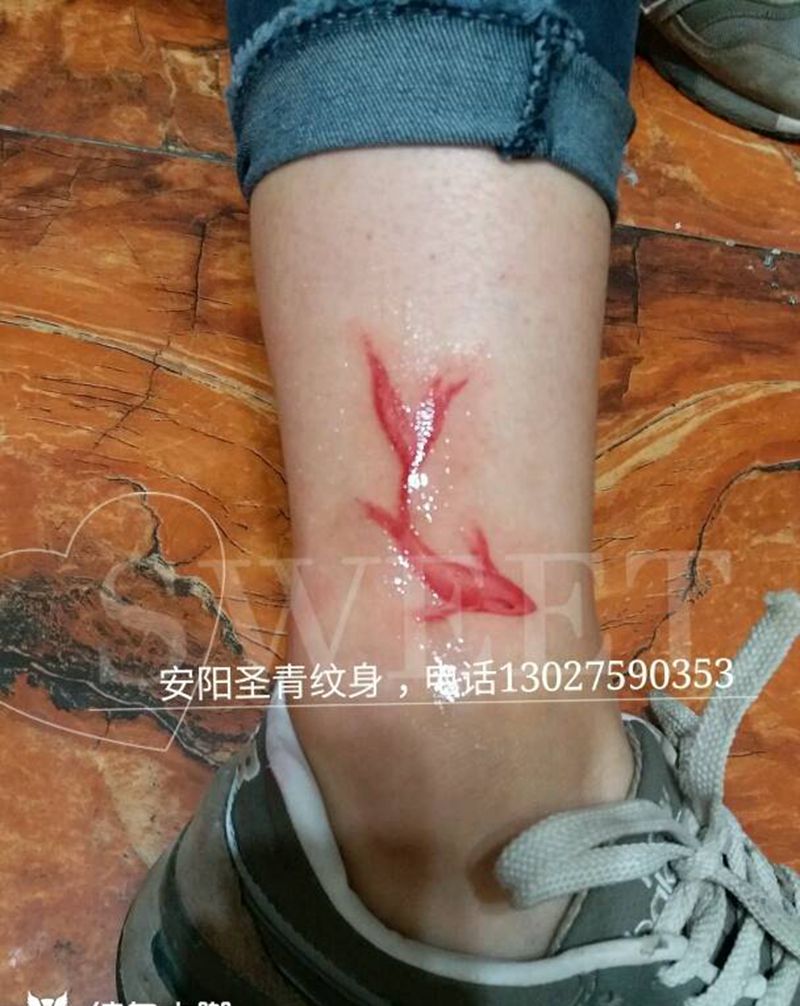 当前位置: 首页 >河南省安阳市纹身店-安阳圣青纹身工作室纹身图案>鱼完成,美女小腿纹身图片