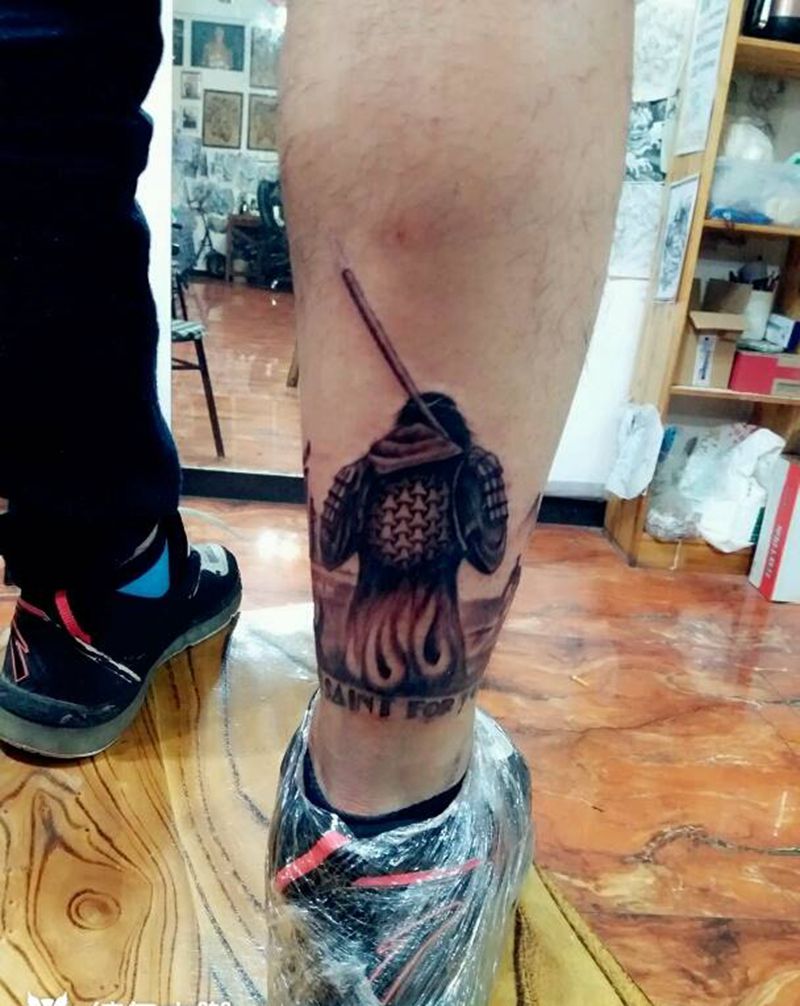 • T包小腿吹火男+阿多福纹身图片_腿部老传统新传统吹火男阿