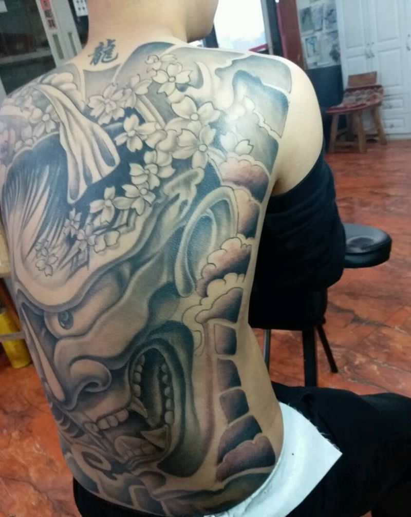 黑灰满背纹身图案