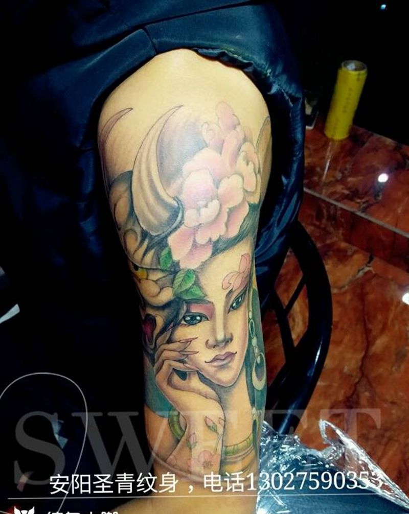 当前位置: 首页 >河南省安阳市纹身店-安阳圣青纹身工作室纹身图案>大臂彩色艺姬完成纹身图片