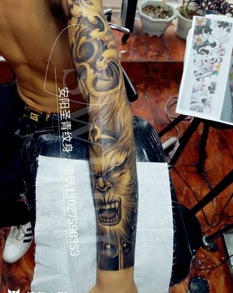 当前位置: 首页 >河南省安阳市纹身店-安阳圣青纹身工作室纹身图案>孙悟空完成纹身图片
