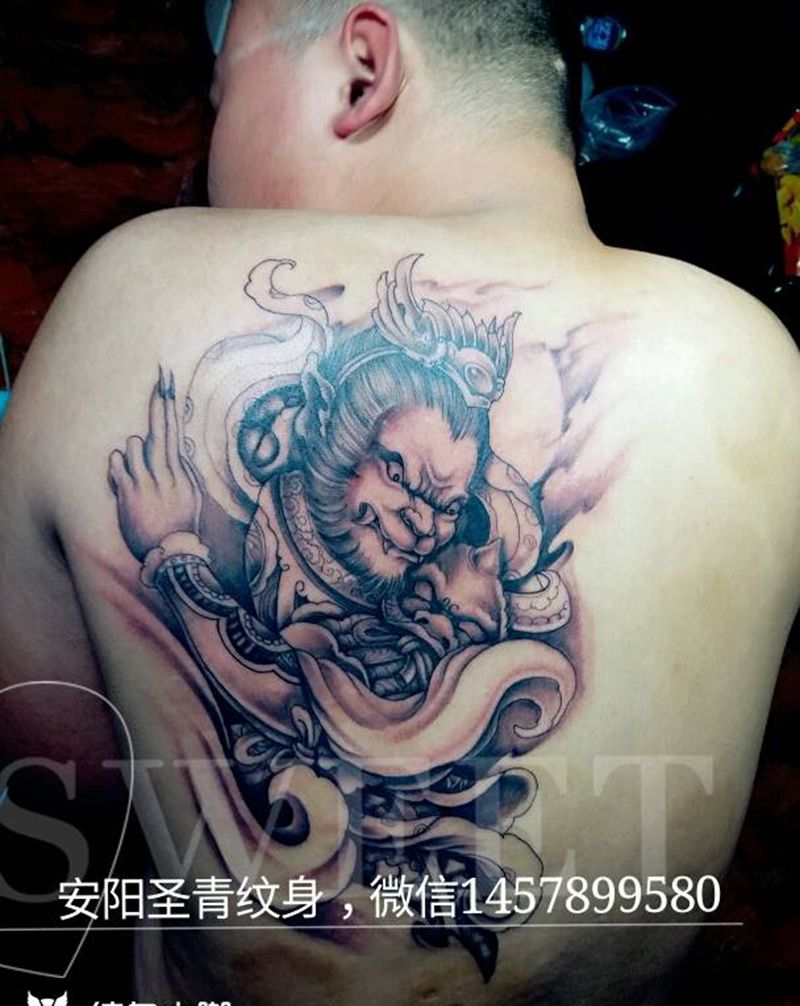 当前位置: 首页 >河南省安阳市纹身店-安阳圣青纹身工作室纹身图案>后背孙悟空,喜欢的约我纹身图片