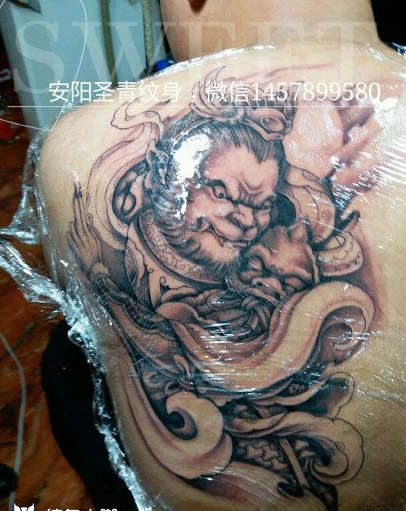 当前位置: 首页 >河南省安阳市纹身店-安阳圣青纹身工作室纹身图案>后背孙悟空,喜欢的约我纹身图片