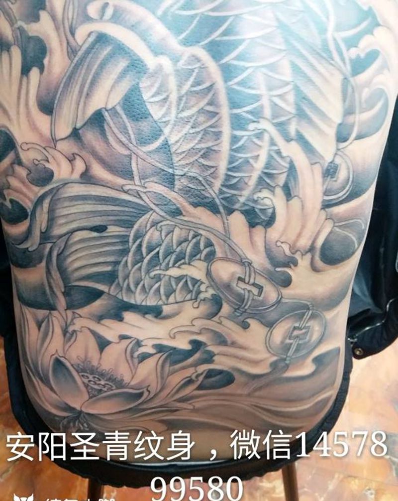 黑灰满背纹身图案