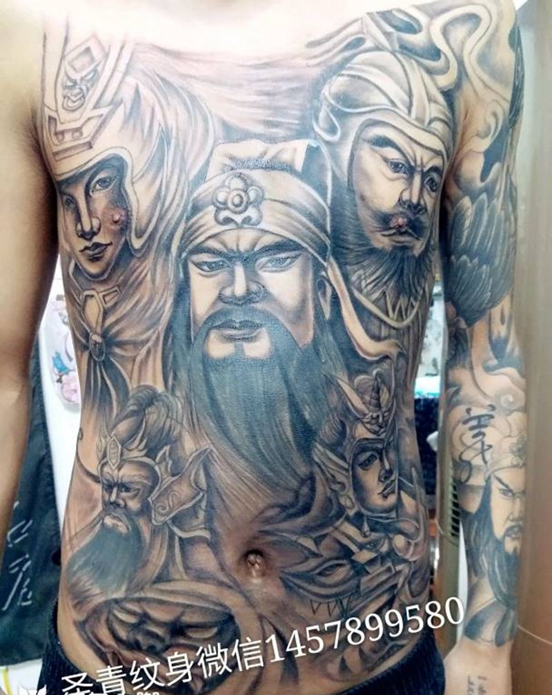 • 黑灰满背纹身图案