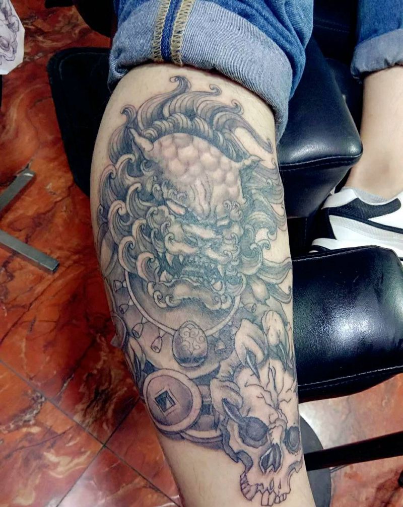 当前位置: 首页 >河南省安阳市纹身店-安阳圣青纹身工作室纹身图案>小腿唐狮完成,喜欢的约起我纹身图片