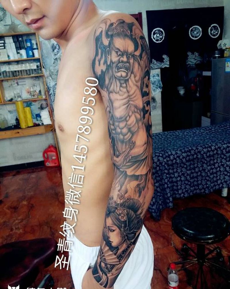 当前位置: 首页 >河南省安阳市纹身店-安阳圣青纹身工作室纹身图案>黑灰花臂完成喜欢的约我微信纹身图片