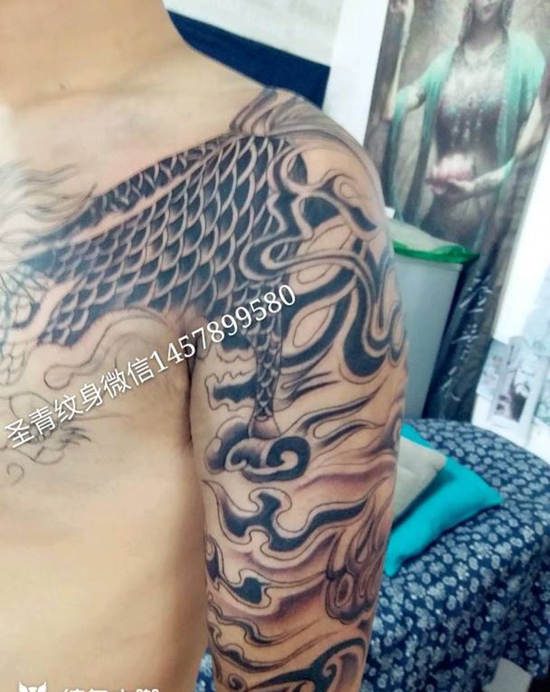 当前位置: 首页 >河南省安阳市纹身店-安阳圣青纹身工作室纹身图案>半甲麒麟完成喜欢的约起纹身图片