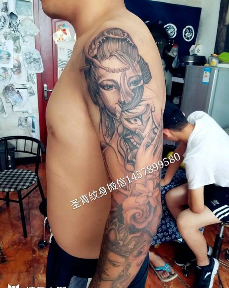 当前位置: 首页 >河南省安阳市纹身店-安阳圣青纹身工作室纹身图案>花臂完成喜欢的约我微信纹身图片