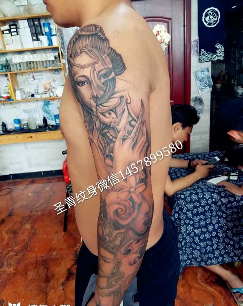 当前位置: 首页 >河南省安阳市纹身店-安阳圣青纹身工作室纹身图案>花臂完成喜欢的约我微信纹身图片
