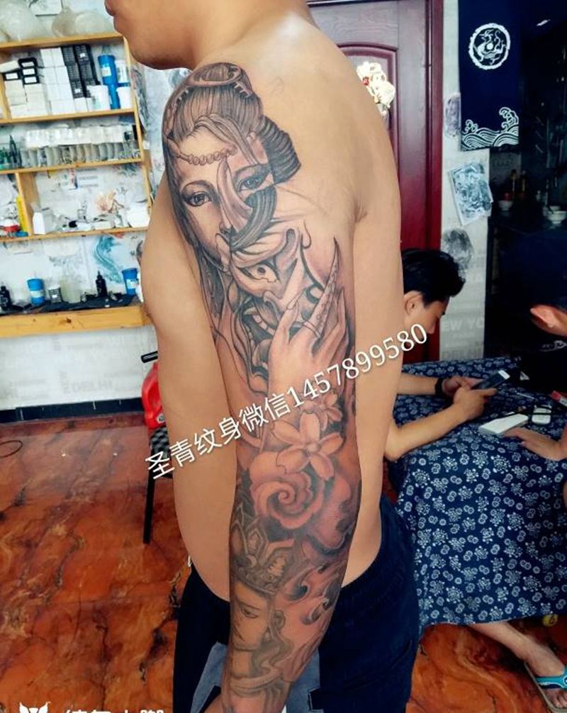 当前位置: 首页 >河南省安阳市纹身店-安阳圣青纹身工作室纹身图案>花臂完成喜欢的约我微信纹身图片