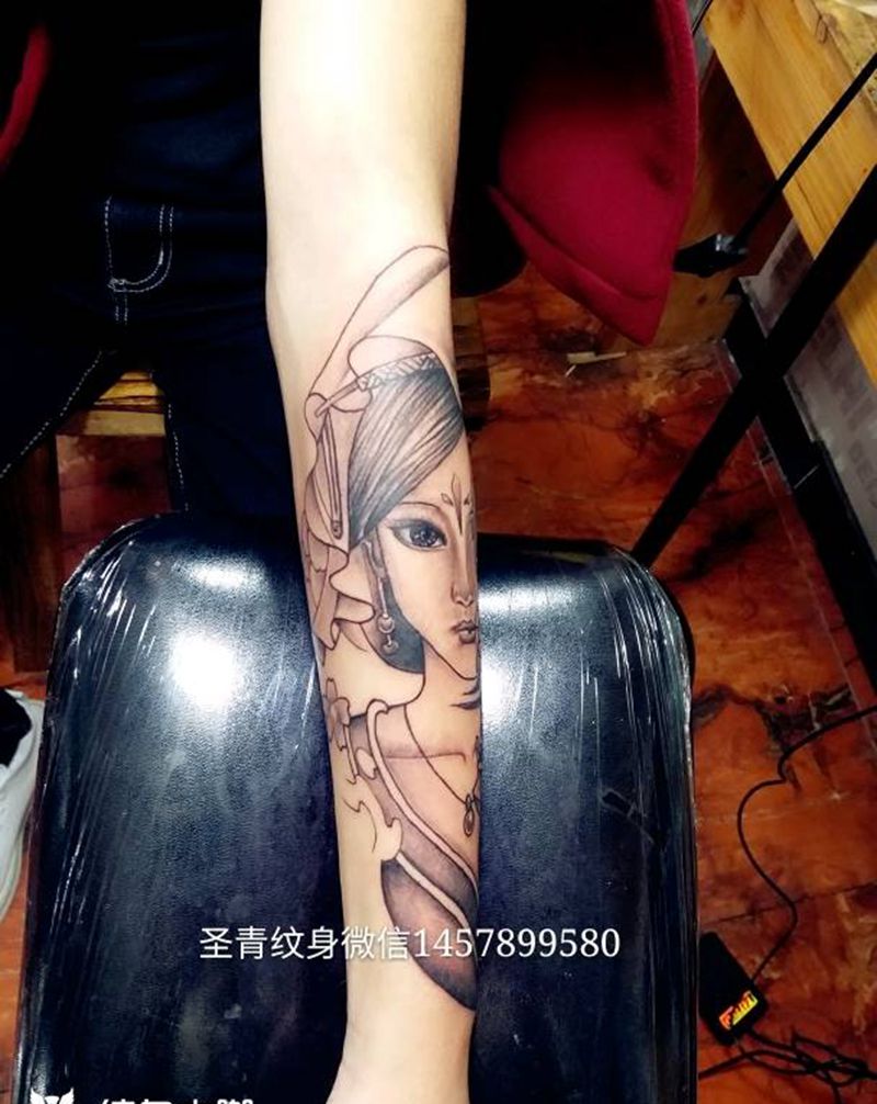 当前位置: 首页 >河南省安阳市纹身店-安阳圣青纹身工作室纹身图案>艺妓完成纹身图片