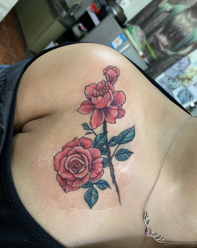• 女性大花胸纹身_43张霸气漂亮的女性大花胸纹身图案作品