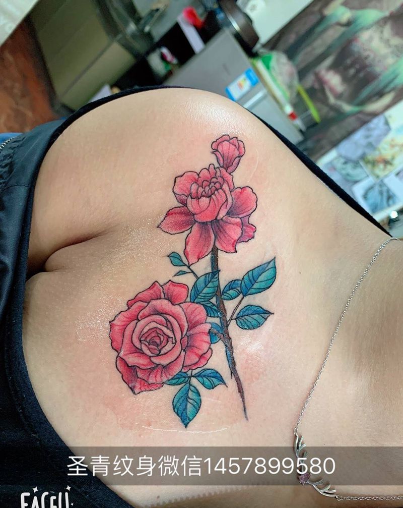 • 女性大花胸纹身_43张霸气漂亮的女性大花胸纹身图案作品