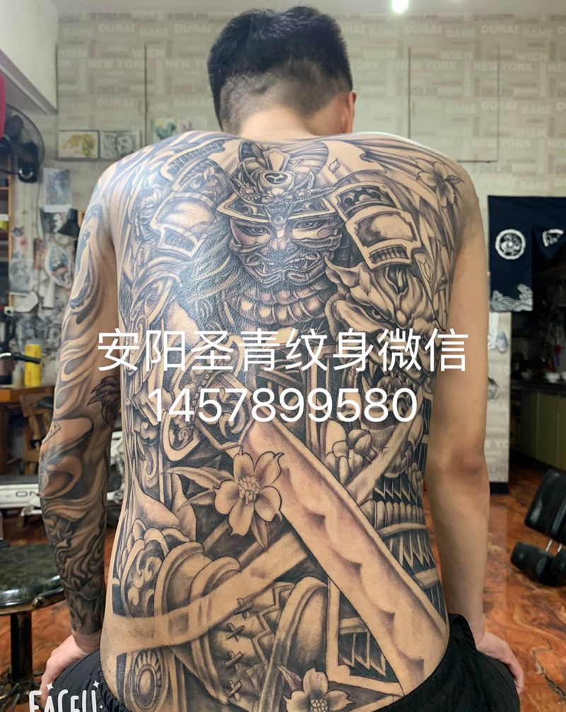 黑灰满背纹身图案