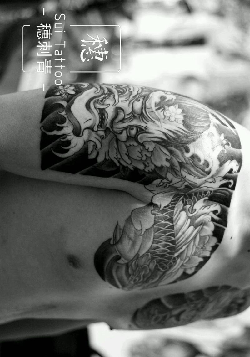 • T网红王老大花腿龙纹身图片_腿部新传统纹身图案