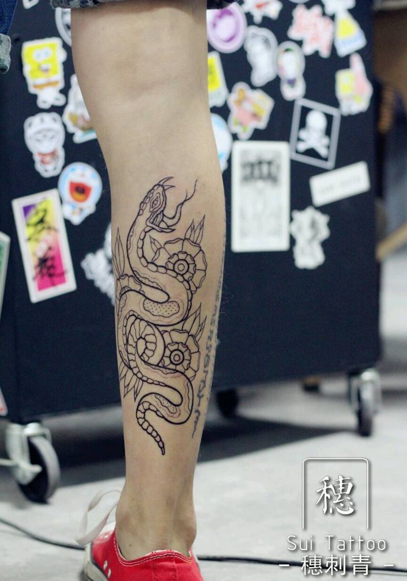 • T网红王老大花腿龙纹身图片_腿部新传统纹身图案