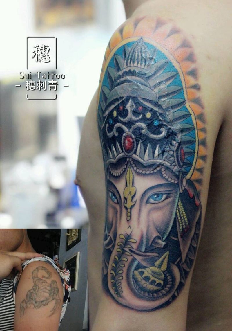 当前位置: 首页 >河南省新乡市纹身店-5+TATTOO刺青工作室纹身图案>象神完美遮盖纹身图片