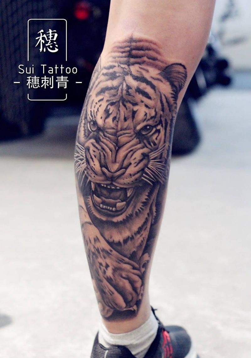 • T网红王老大花腿龙纹身图片_腿部新传统纹身图案