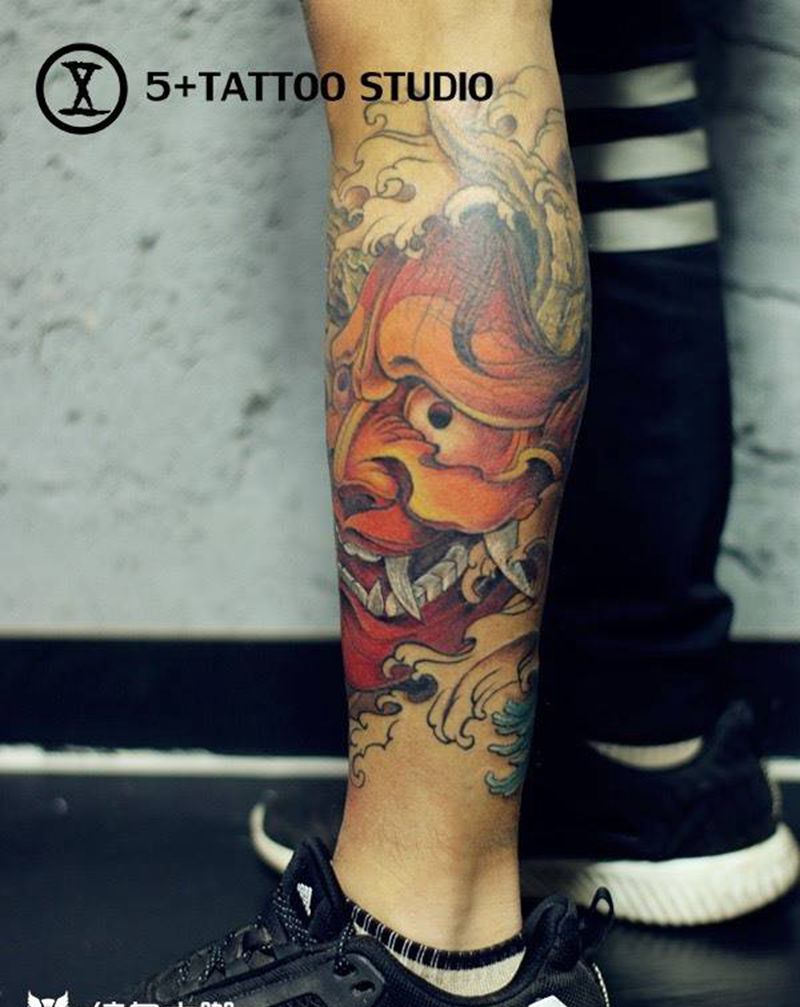 • T网红王老大花腿龙纹身图片_腿部新传统纹身图案