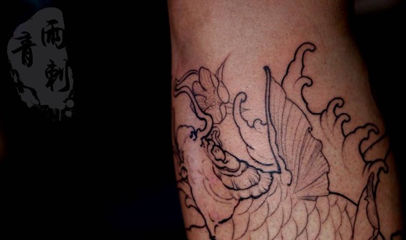 当前位置: 首页 >河南省平顶山市纹身店-雨刺青纹身图案>锦鲤线条纹身图片_腿部新传统锦鲤鱼纹身图案