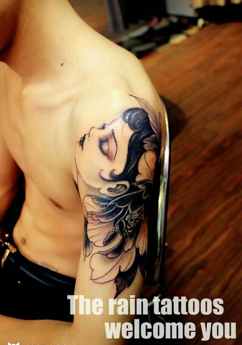 当前位置: 首页 >河南省平顶山市纹身店-雨刺青纹身图案>美人如画,遮盖。纹身图片_肩部手臂欧美传统清新写实人物原创成品纹身图案