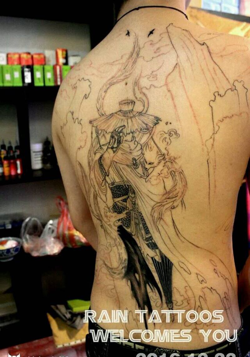 当前位置: 首页 >河南省平顶山市纹身店-雨刺青纹身图案>隐纹身图片_背部传统肖像写实国画人物原创成品纹身图案