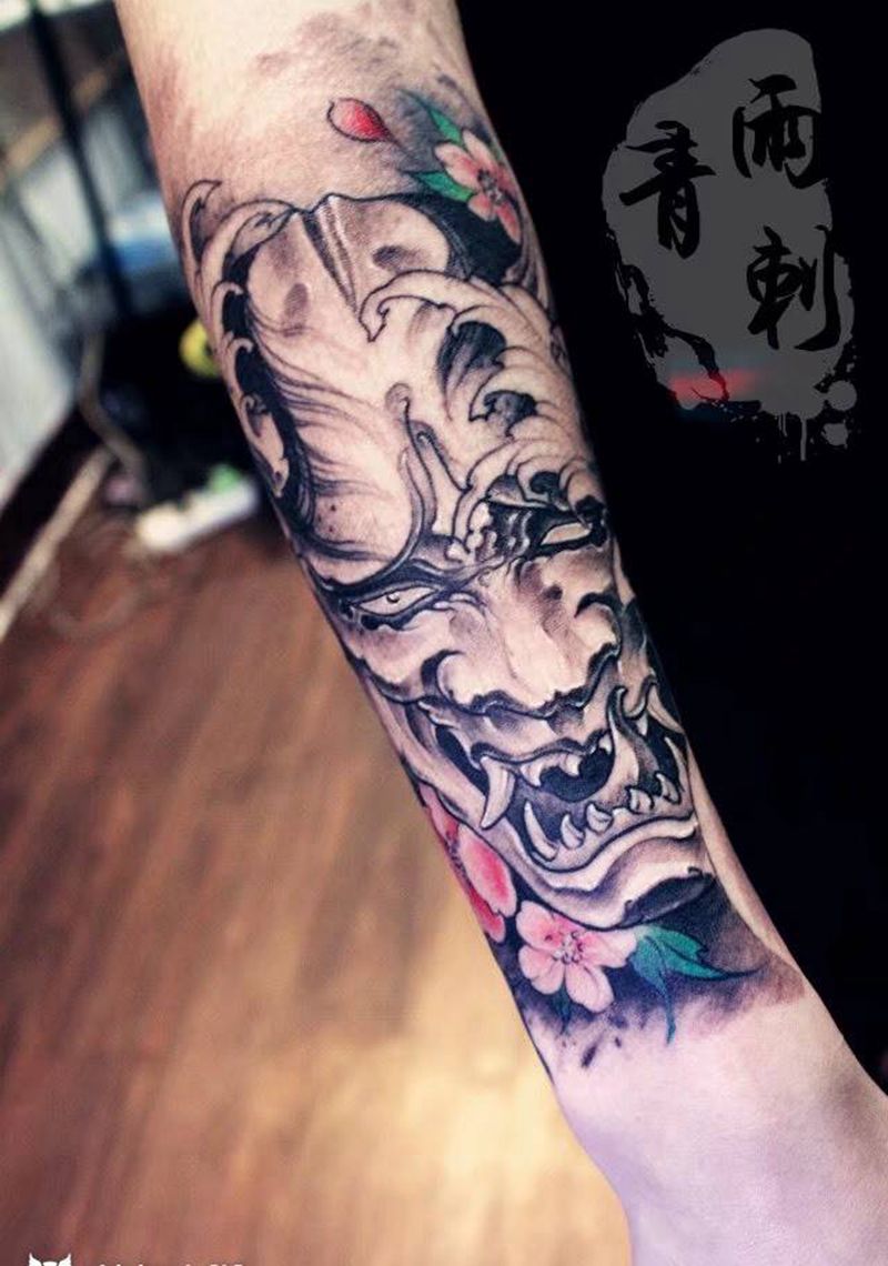 善恶相生纹身图片_成品传统手稿手臂手部写实肖像鬼神宗教原创纹身图案