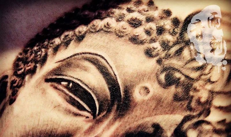 大日如来纹身图片_成品胸部肩部传统肖像写实鬼神人物纹身图案