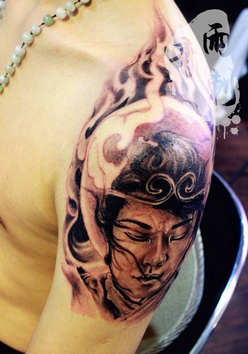 当前位置: 首页 >河南省平顶山市纹身店-雨刺青纹身图案>一生所爱纹身图片_成品写实肖像肩部手臂人物静物纹身图案