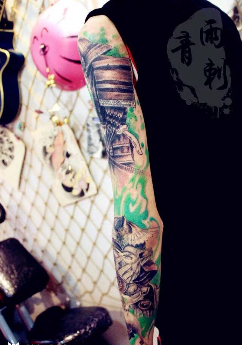 武道纹身图片_成品原创插画手臂肩部手部写实欧美肖像人物纹身图案