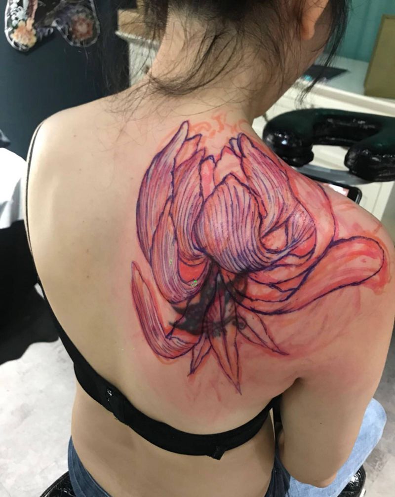 厚朴花纹身图片_成品肩部颈部背部清新欧美植物原创静物遮盖纹身图案