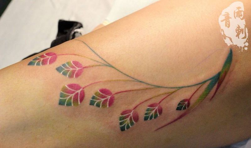 当前位置: 首页 >河南省平顶山市纹身店-雨刺青纹身图案>彩色藤环纹身图片_成品腿部清新植物纹身图案