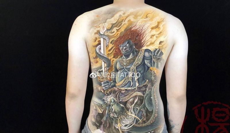 黑灰满背纹身图案