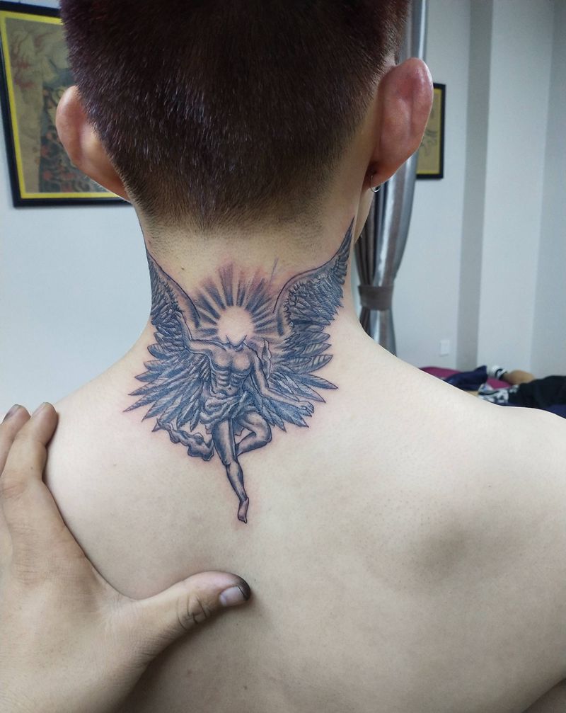 权志龙同款纹身图片_颈部欧美写实纹身图案