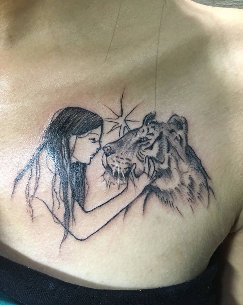 • 女性大花胸纹身_43张霸气漂亮的女性大花胸纹身图案作品