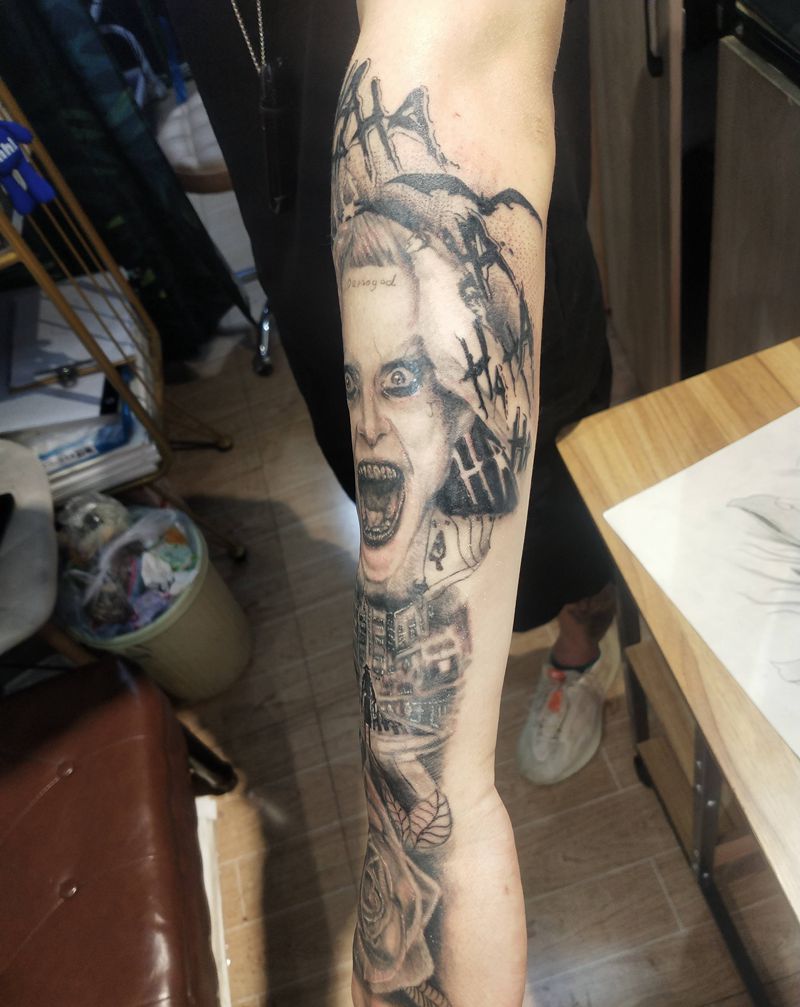 当前位置: 首页 >河南省新乡市纹身店-桃子刺青纹身图案>小丑纹身图片_手臂欧美写实纹身图案