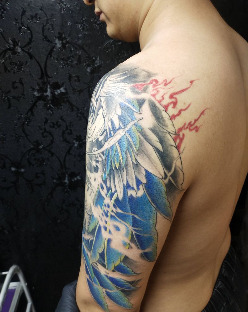 • 纹身吧推荐的披肩图腾半胛纹身图案作品展示