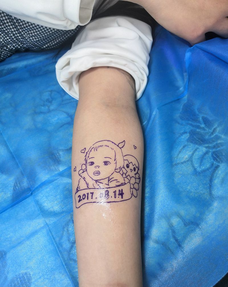 • T家庭图,一家四口生日纪念!纹身图片_手臂纹身图案